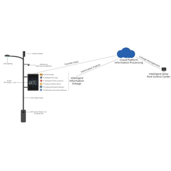 The smart light pole is equipped with video monitoring for specific purposes and different functions, which can effectively implement the continuous monitoring records of traffic violations, traffic violations, traffic flow statistics, and security monitoring, judge events, actively give effective feedback, and timely assist the relevant responsible management departments and personnel to deal with them in a timely manner.